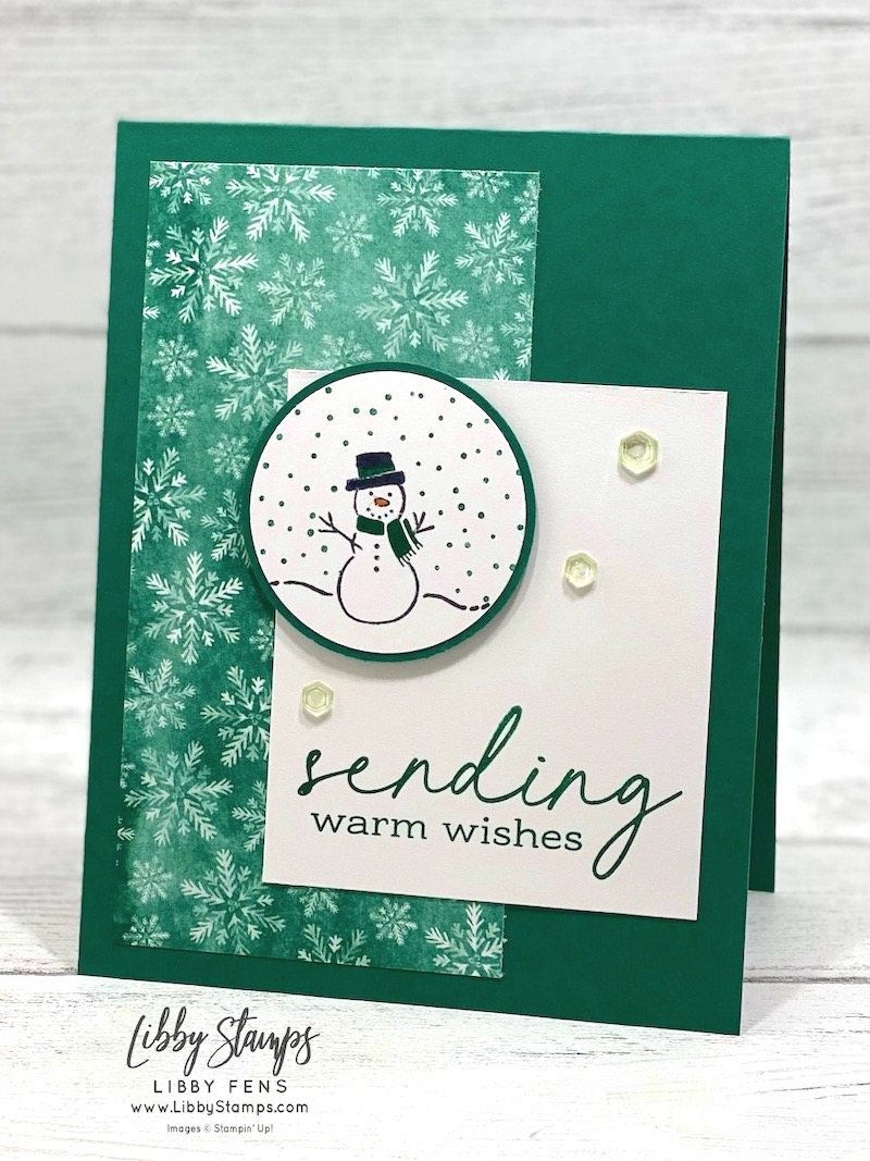 So sweet! That Shaded Spruce snowy DSP works great with your cheerful snowman image.